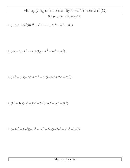 Algebra trickBinomials multiply binomial worksheets multiplying Multiplying a binomial by two trinomials (g)Multiplying polynomials worksheets.